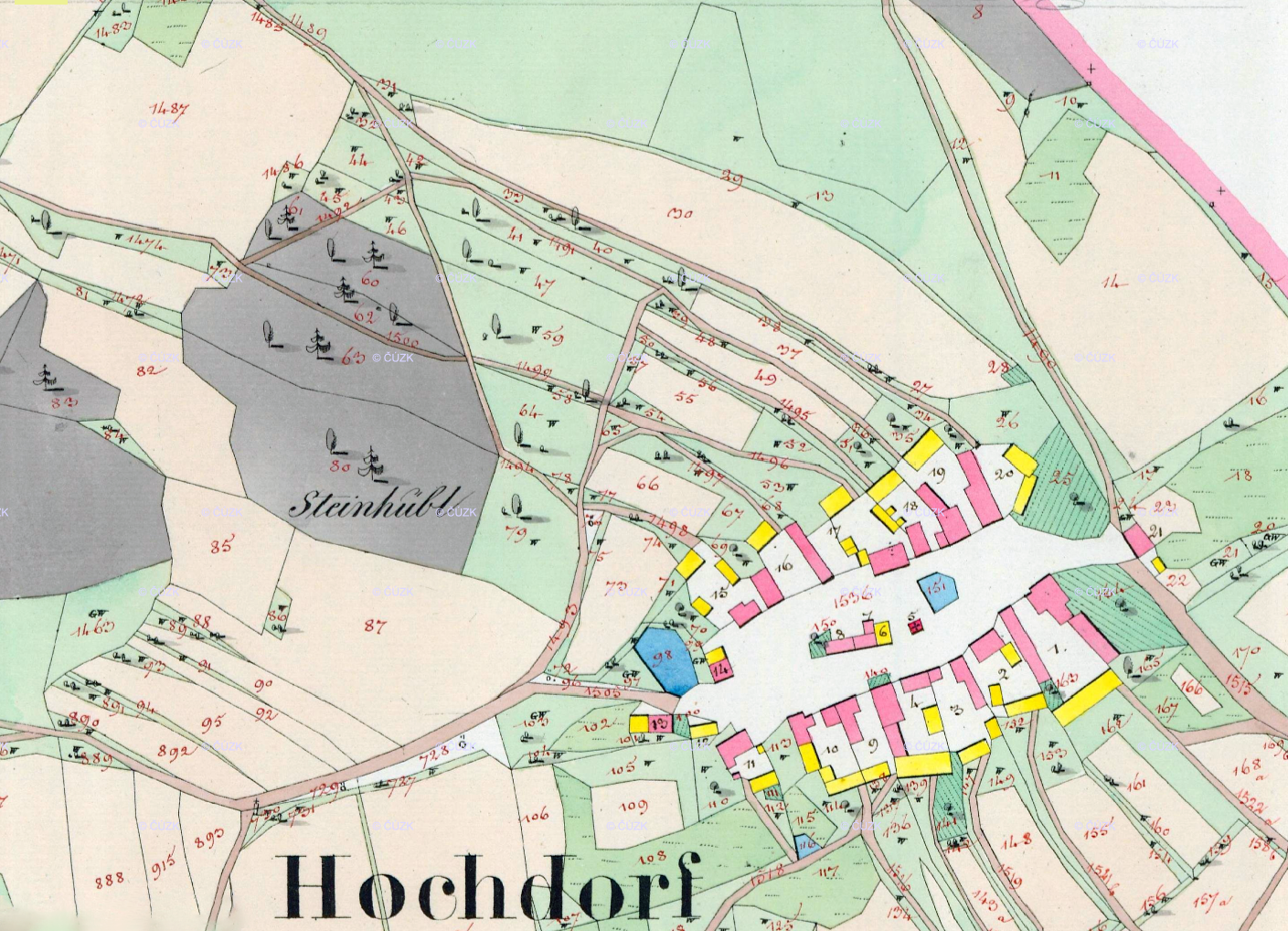 Ze západu vede polní cesta z Hosova přes chatovou kolonii až na náves.